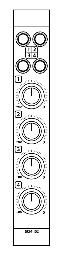 The SCM-I02 input module offers a cheap and easy way to add 4 mono inputs to your mixer. With just level control, VU meter connectors and direct out connectors it offers the most basic set of controls. But sometimes you don’t need all the bells and whistles and a simple input will do.
