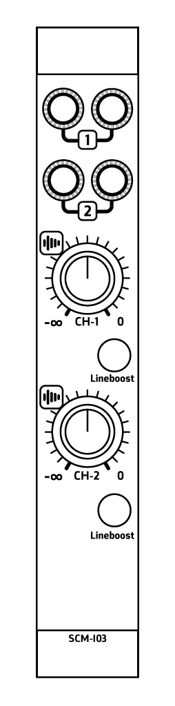 The SCM-I03 is designed as a stereo effect return, but can be used as regular stereo or mono input as well. It offers a basic level control and a 6db gain button for when you use external FX units ( like pedals or 19 inch rack effects ) that operate at line level. It shares it’s VU meter output with the direct output.